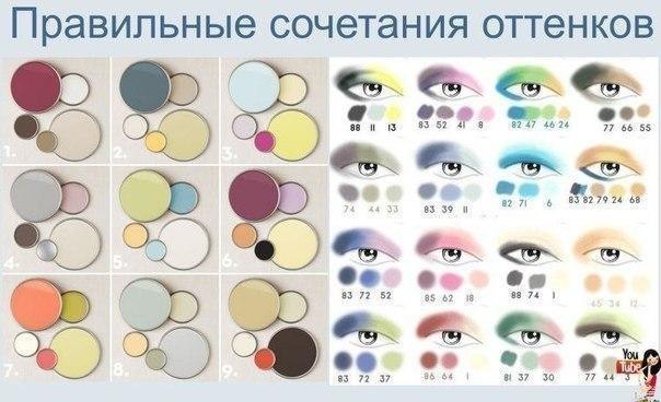 Нашла хорошее фото, какие цвета теней с какими лучше всего сочетать, вот нам в помощь