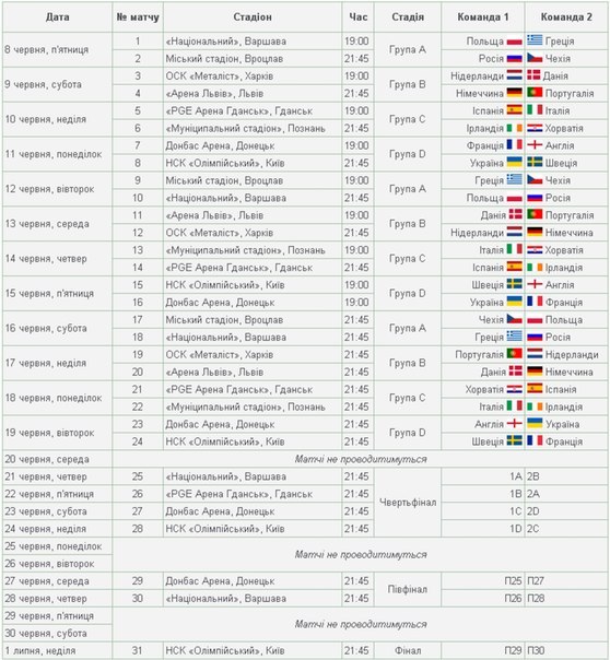 Я сначала испугалась,когда нашим забили,но Шева умничка вдвойне,а вот это ОЛЕ я вчера из окон до утра слышала,как все орали и машины пищали,это ужас Вот расписание следующих матчев кому интересно
