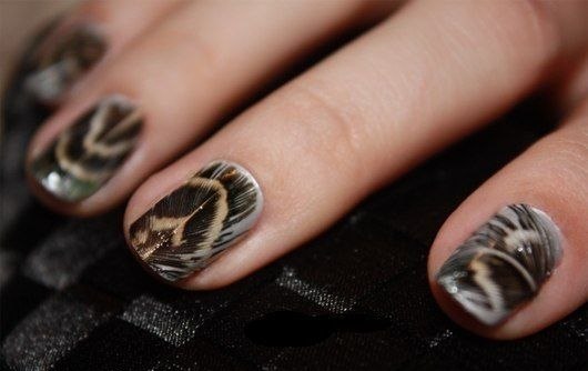 Очень интересный маникюр с перьями, мне понравился! Вот только где эти перья брать? Подушка может в расход пойти?!