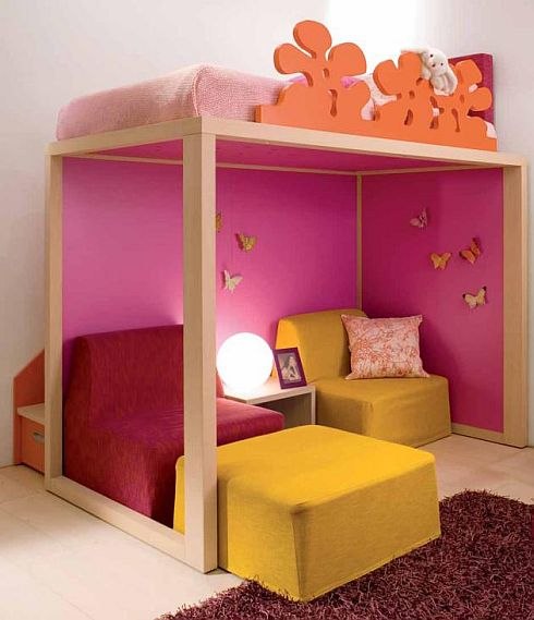 Как вам универсальная детская кровать, влезет все, а вообще для маленьих комнат я бы выбирала такой вариант кровати, и спальное место, и кресла, и это все на одной територии