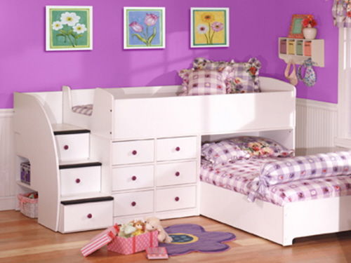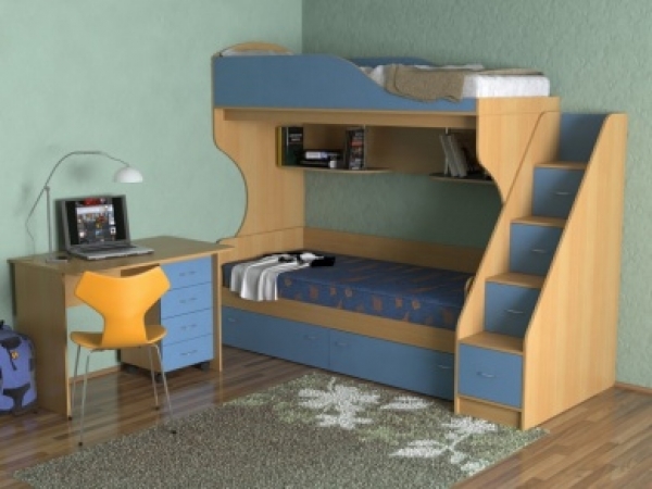 Наверное для двух деток я бы выбрала двух ярусную кровать. Но только чтоб не лестница была на верх, а ступени в виде ящиков для вещей.