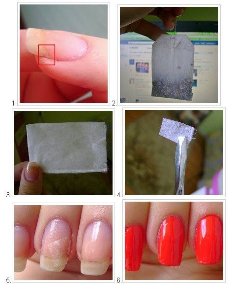 В салоне так шелком заклеивают поломаный ноготь и держиться кстате долго, главное снова нигде не ударить этот ноготь, а вот на счет материала из чайного пакетика никогда не слышала, даже интересно