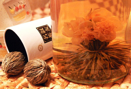А еще можно украшать цукатами или палочками корицы. А вот чай, который сам распускается ничем украшать не нужно, он красив сам по себе. Но этот чай не плавает на поверхности, а на дне заварника, поэтому если хочется чтоб все члены семьи любовались чаем в чашке, нужно украшать дополнительно как мы писали ранее.