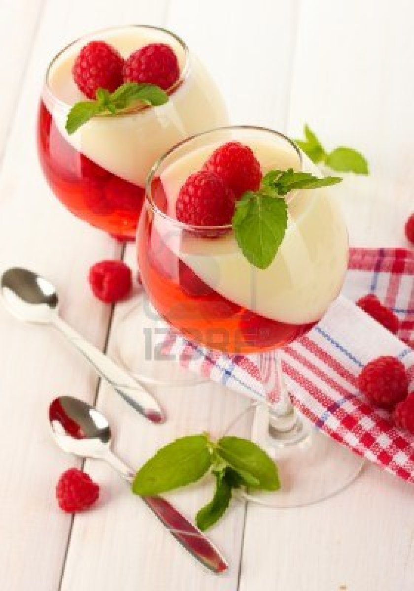 Мне сейчас очень нравится, как красиво делают фруктовое желе. Так красиво подают в бокалах и высоких креманках, делают сочетания яркого фруктового с белым сливочным.