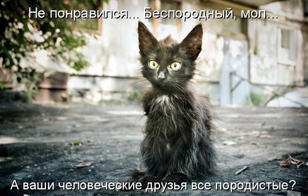 Очаровательный котэ и очень хорошая подпись. Не переношу тех людей, которые берут, а потом выбрасывают на улицу животных. Мне кажется, что они так готовы поступить не только с животными, какими бы хорошими они при этом не старались показаться окружающим...
