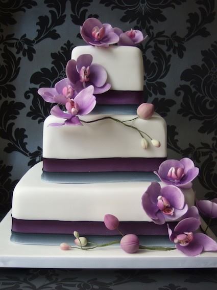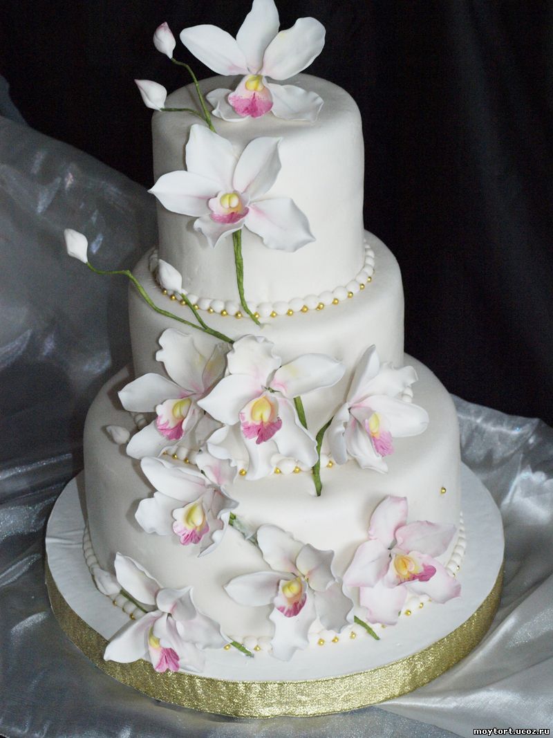 мне нравятся свадебные торты украшенные сьедобными цветами,как этот на пример  Свадебный торт, украшен съедобными орхидеями