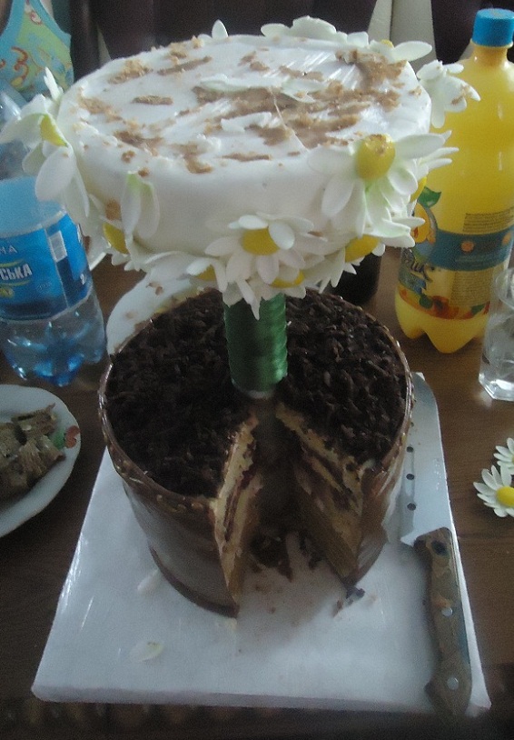очень необычный торт, весь усеян цветами. Правда, глазу не на чем остановится, мне нравится, когда кроме цветов есть еще и более гладкие, плоские места. Тогда тортик получается еще более интересным