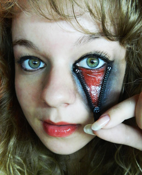 По моему уже был такой макияж, но правда выглядит жутко, хотя для Хэллоуина может и в самый раз.