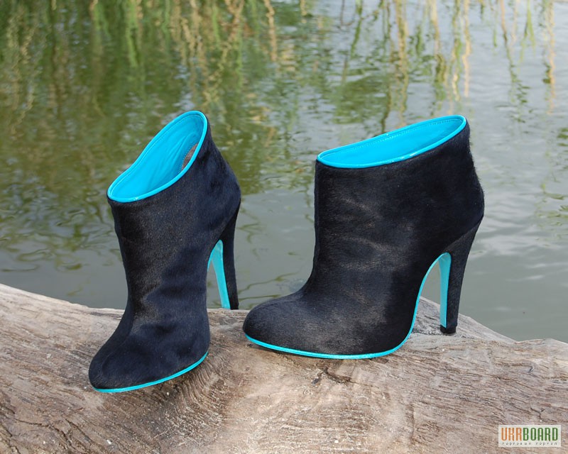 Мені сподобались чорні замшеві ботильйони з голубими краями. Дуже гарне поєднання кольорів. До червоного і чорного всі вже звикли, а от блакитний- дуже гарно!!!!!!