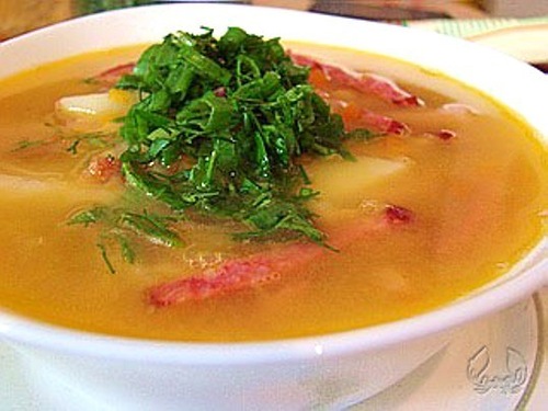 А меня сегодня вечером ждет паста карбонара, а завтра будет традицонно пицца. Эти два блюда у нас уже не первый месяц традиция на выходных )) Да,супчик получился очень вкусный,несмотря на то,что я его готовила просто на ребрышках без всяких копченостей  Мама когда варила,добавляла какой-то балычек для остроты вкуса. Якось влітку, коли ми з чоловіком залишилися самі вдома, мама з малою поїхали до сестри у гості, я наварила своєму чоловіку горохового супу (він його дуже любить). Цей суп йому настільки смакував, що він не міг мене нахвалити. І я, щоб догодити своєму чоловіку, варила цей суп ще два дні поспіль, поки він не попросив мене урізноманітнити наше меню, хоча б гороховою кашею  Зараз він часто пригадує цей випадок, коли хоче посміятися з мене, яка я господиня, як немає поряд мами... Смешная история  А я только что насыпала гороховый супчик маме и бабушке,так аж самой захотелось поесть его еще раз,хотя я его поела полчаса назад  Вкусненький получился
