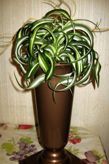 У меня год назад появился в доме кучерявых хлорофитум! Это просто прелесть!Неприхотливыое и невероятно полезное растение, которое насыщает кислородом лучше других растений. И размножается быстро,у меня уже много таких красавцев)))