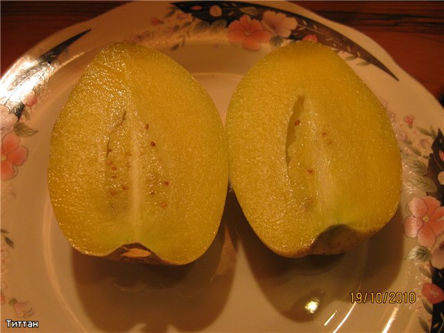 Malva писал(а): Вы знаете чо я прочитала!Оказывается дома можно вырастить пеппино, причем растет оно быстро и уже через 4-6 месяцев (вдумайтесь!) дает плоды!По-моему это самое быстрорастущее экзотическое растение, просто шикарное, полезное, вкусное, и еще и так быстро плодоносит. Выращивать - из косточки, все просто и легко!Я хочу!!!А вы?) Я наверное, совсем дремучая, но разве это не зеленый помидор? И тоже никогда не слышала про пеппино. Интересно, то что на фотке - это уже готовый к употреблению плод или ему полагается еще как-то там дозреть и цвет поменять? А так - помидор помидором.. его хоть едят или так, любуются?