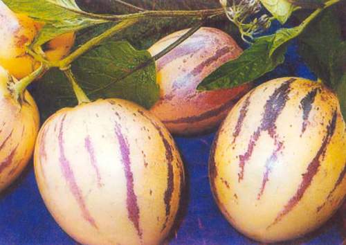 Malva писал(а): Вы знаете чо я прочитала!Оказывается дома можно вырастить пеппино, причем растет оно быстро и уже через 4-6 месяцев (вдумайтесь!) дает плоды!По-моему это самое быстрорастущее экзотическое растение, просто шикарное, полезное, вкусное, и еще и так быстро плодоносит. Выращивать - из косточки, все просто и легко!Я хочу!!!А вы?) Я наверное, совсем дремучая, но разве это не зеленый помидор? И тоже никогда не слышала про пеппино. Интересно, то что на фотке - это уже готовый к употреблению плод или ему полагается еще как-то там дозреть и цвет поменять? А так - помидор помидором.. его хоть едят или так, любуются?