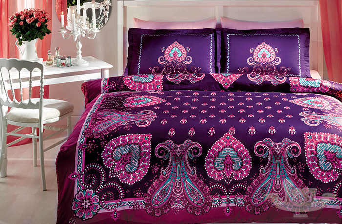 Аврора писал(а): такой комплект подойдет под особый дизайн, если спальня в таком же восточном стиле. Ой, а мне эти сине-фиолетовые постели больше всего понравились из последних фото. И по-моему совсем не обязательно, чтоб вся спальня восточной была. Орнамент хоть и выраженный, но не навязчивый. Да и постель ведь для того, чтоб спать, а не на обозрение всем выставлять.