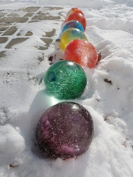 olexandrivna писал(а): Зустріла таку класну ідею, як можна прикрасити подвіря))) Берете звичайні кульки, наповняєте їх водою плюс барвник, потім виносите на двір, розкладаєте і, коли вони замерзнуть, лопаєте))) Ось такі барви на снігу)))) А вони самі не будуть лопати від перепадів температур? Перевіряли Ви цю ідею на собі?