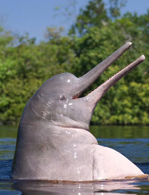 вот еще одно интересное создание природы.. АМАЗОНСКИЙ ДЕЛЬФИН. Является самым крупным речным дельфином. Inia geoffrensis, как называют его ученые, достигает 2,5 метров в длину и массы 2 центнера. Светло-серые молодые особи с возрастом светлеют. Тело у амазонского дельфина полное, с тонким хвостом и узкой мордой. Круглый лоб, немного загнутый клюв и маленькие глаза – особенности этого вида дельфинов. Встречается амазонский дельфин в реках и озерах Латинской Америки.
