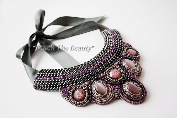 Мне очень нравятся украшения на шею такого плана, это самодельное украшение, но просто роскошное, смотрится шикарно и необычно