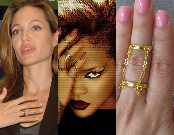 На руке Анджелины Джоли еще ничего смотрится, когда пальцы тонкие и длинные, но вот на последнем фото просто отвратительно, а вообще такие кольца не для меня, эти цепочки раздражали бы.