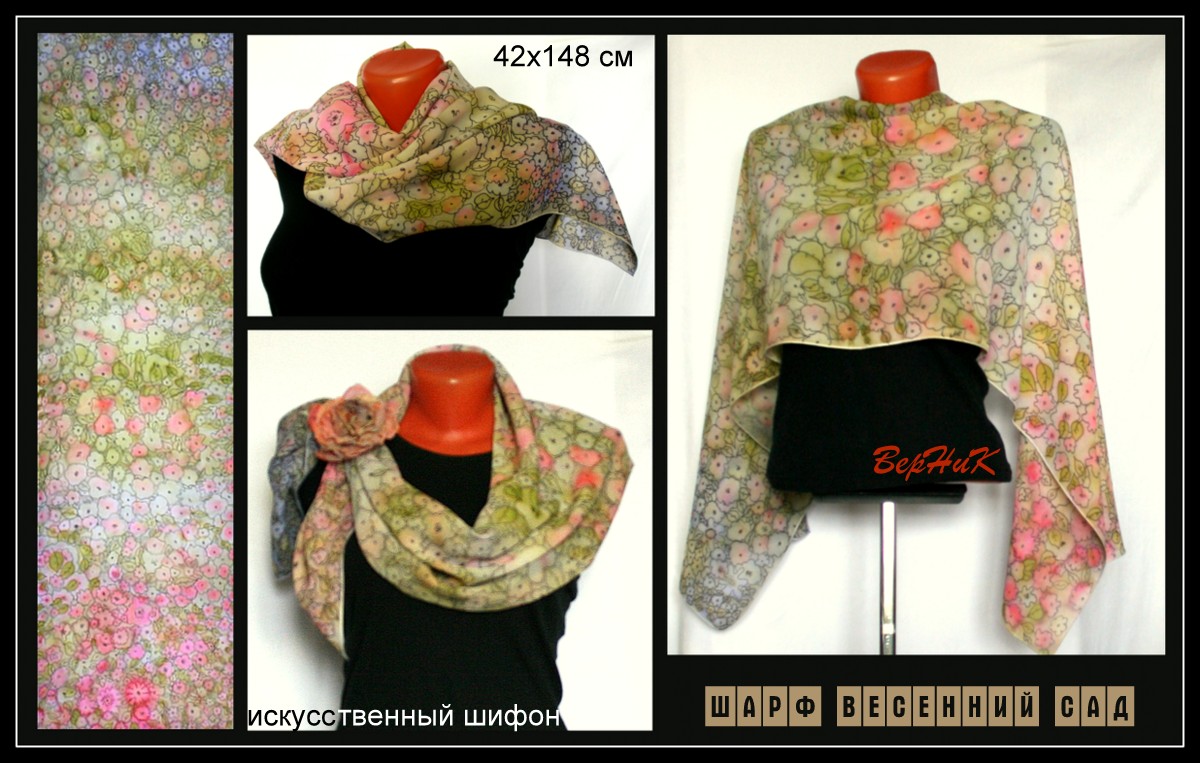 Я могу оценить такой шарф, как вид искусства, но не одела бы никогда такое. Совершенно не мой стиль. Уж слишком вычурно и много цветов!