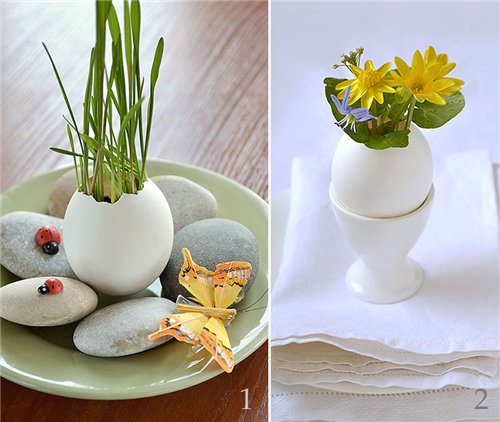 очень красиво и оригинально! и очень мило) когда-то продавались такие маленькие вазончики в виде головы. польешь сверху и за пару дней растет прическа) вот такую бы травичку в скорлупку посадить, выросла бы быстро