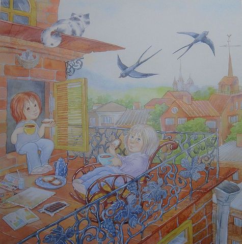 Это моя одноклассница рисовала. Она сейчас детские книжки оформляет.