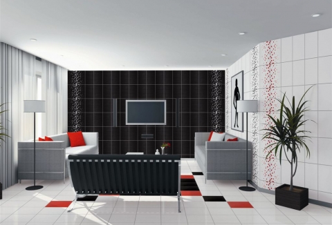 Красиво на фто выглядит. Так необычно. Вечером в таких помещения довольно интересно, хотя днем может быть мрачно. Я бы дома могла сделать темные стены наверное в ванной или на кухне!ВОт например красиво сочетание плитки для кухни. Для ванной нужно что-то попрохладнее...