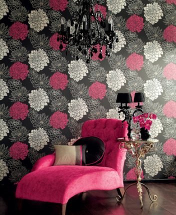 Нашла красивые обои, темные. Не против себе такие в комнату. Хоть они о очень пестрые, но черный в сочетании с нежными пастельными цветами дает очень красивый и необычный результат. В крайнем случае темной можно сделать только одну стену...