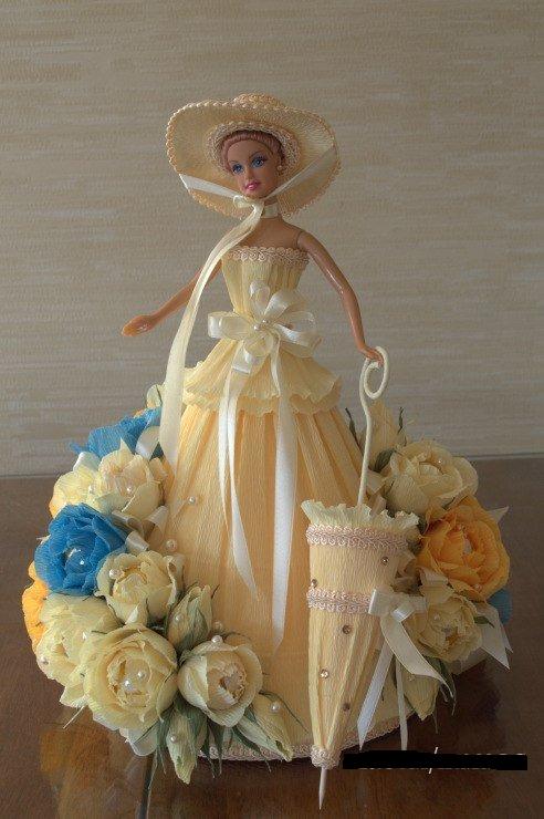 Таких букетов-кукол я еще не видела. Думаю, что скорее подарок для девочки - и конфеты сьест, и куклой будет играть. Самому конечно такое трудно сделать, но сама идея очень понравилась.