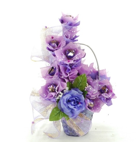 Я последнее время почти всем и на все праздники дарю букет с конфет. Все в восторге. Причем если едешь куда то далеко или есть вариант что букет пол дня будет кататься в машине, то в случаи конфетного букета хотя бы не придется переживать что он завянет.