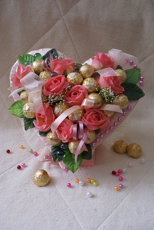 а мне не очень нравится такое сочетание - букет из цветов. Я бы хотела получить настоящие цветы, и коробочку конфет. Может, это потому что моя сестра дарила несколько раз маме такие букеты из конфет, и конфеты в них всегда были невкусные - теперь мне подобный подарок всегда уже на подсознании кажется неудачным. Ну и некрасиво будет начинать его есть - сразу букет станет корявым на вид ((