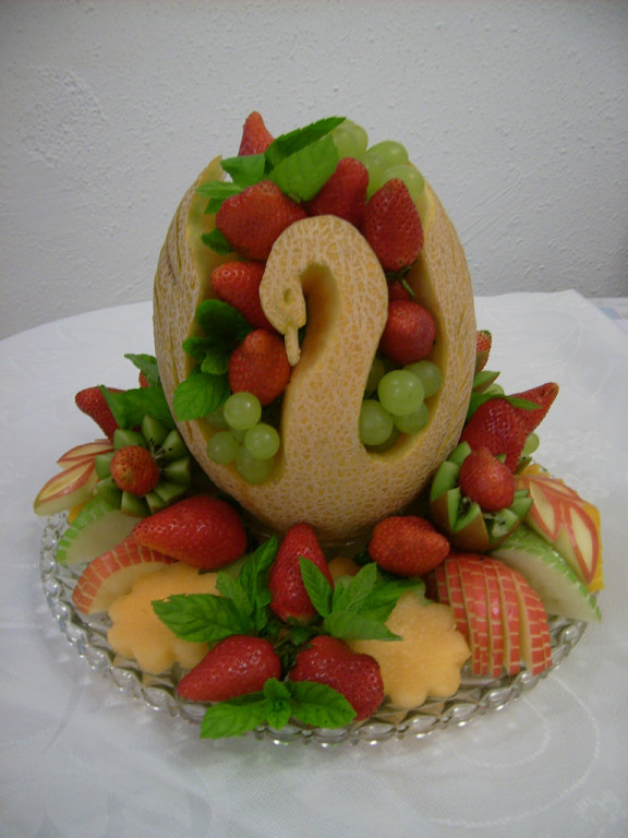 Леди-Ю писал(а): Я особенно люблю карвинг арбузов. Не представляю как такое делают: Так по-моему карвинг арбузов и каких-то кабачковых самый удачноисполнимый: кожура в меру толстая, поверхность достаточная, а у арбуза еще и три цвета считай сочетаются - белый, зеленый, розовый. А вот попробуйте выкроить что-то из яблока? Так что по-моему большинство удачных фоток карвинга как раз из арбуза. Хотя, вот и яблоко, но не так шикарно, как арбуз: