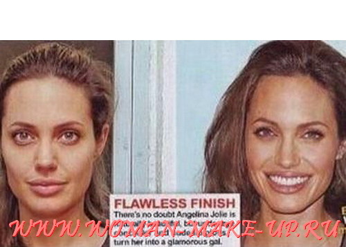 Да я її і з макіяжем не дуже то й люблю  Цікаво було б побачити, як виглядає без макіяжу Анджеліна Джолі... Ось знайшла, дивіться, як на мене, то гарненька...