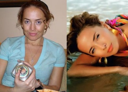 Ну вона, все-таки, не молоденька та й фото мабуть дуже не вдале. Я думаю виглядає в житті вона без макіяжу, все-таки, краще ніж тут, але до образів створених стилістами і фотошопом в реальному житті їй дуже й дуже ще далеко.... або вже далеко