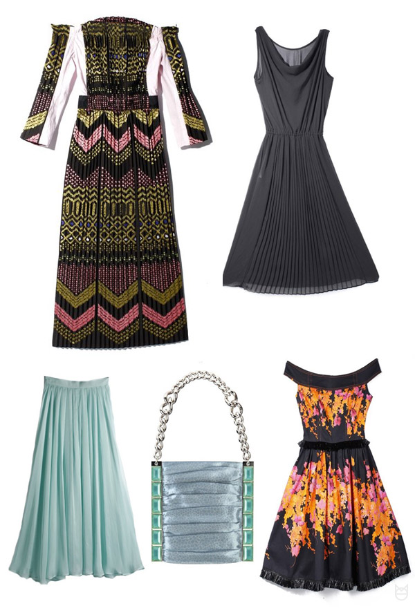 Плиссировка будет в моде весной и летом этого года. Плиссировка — это мелкие параллельные складки, сделанные машинным способом. Плиссировка очень хорошо смотрится на шифоновой и шелковой тканях. Плиссировка заполонила показы модных дизайнеров. Одежду из этой ткани мы можем встретить в весенних коллекциях Chloe, David Koma, Miu Miu и многих других модных брендов. Карамельные оттенки, дерзкие синие и зеленые цвета, черные и белые варианты, все это позволяет проявить фантазию и выбрать именно то, что вам к лицу.