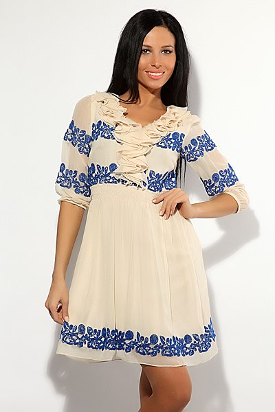 А я к греческому как-то холодно отношусь, не очень мне такие наряды нравятся, все таки мы в другом времени живем. Очень понравилось вот такое платьице от Дольче Габбана, белое с голубым узором, ммм