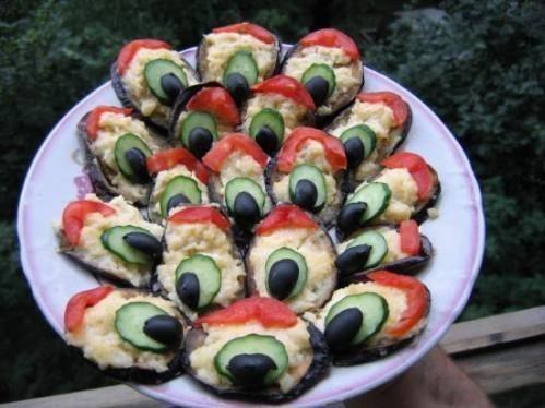 М-да, нет слов. Одно блюдо краше другого. Божьи коровки взяла на заметку и сделаю на 8 марта. Но и бабочка сногсшибательная. Ну надо же так красиво выложить! Да и от пингвинчика балдею. К следующему празднику буду открывать эту тему и сервировать блюда, если у самой фантазии не хватает...