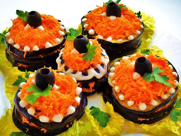 Можна прикрасити чимось іншим яскравим - помідорами, гранатом, перцем, оливками, огірочкамигілочками зеленої цибулі. Головне треба грати на контрастах, щоб виглядало яскраво і водночас апетитно.