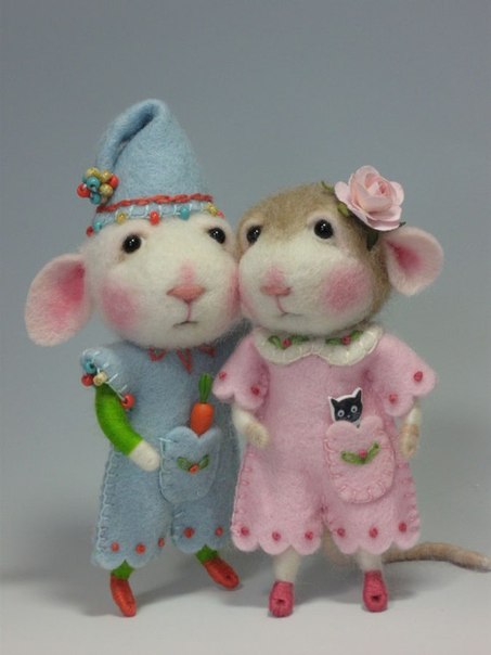 Увидела фото и решила сохранить для форума. Просто очень сильно понравились. Здесь по ходу сочетается и валяние из шерсти, и использование фетра.