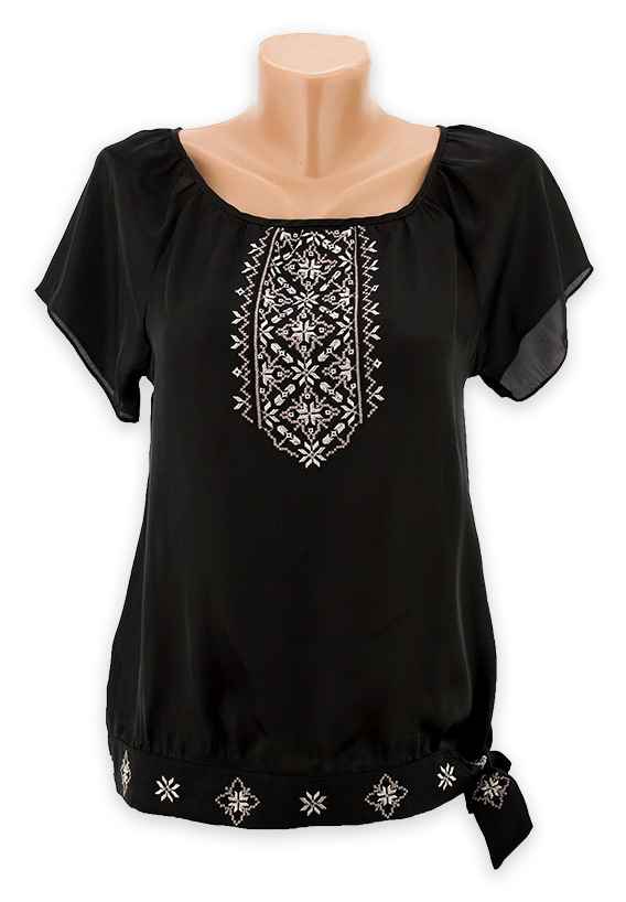 А мне очень понравилась такая сорочка вышиванка на черной ткани! Вроде и ткань черная, но из-за самой вышивки блузка кажется яркой и праздничной. Вложение: