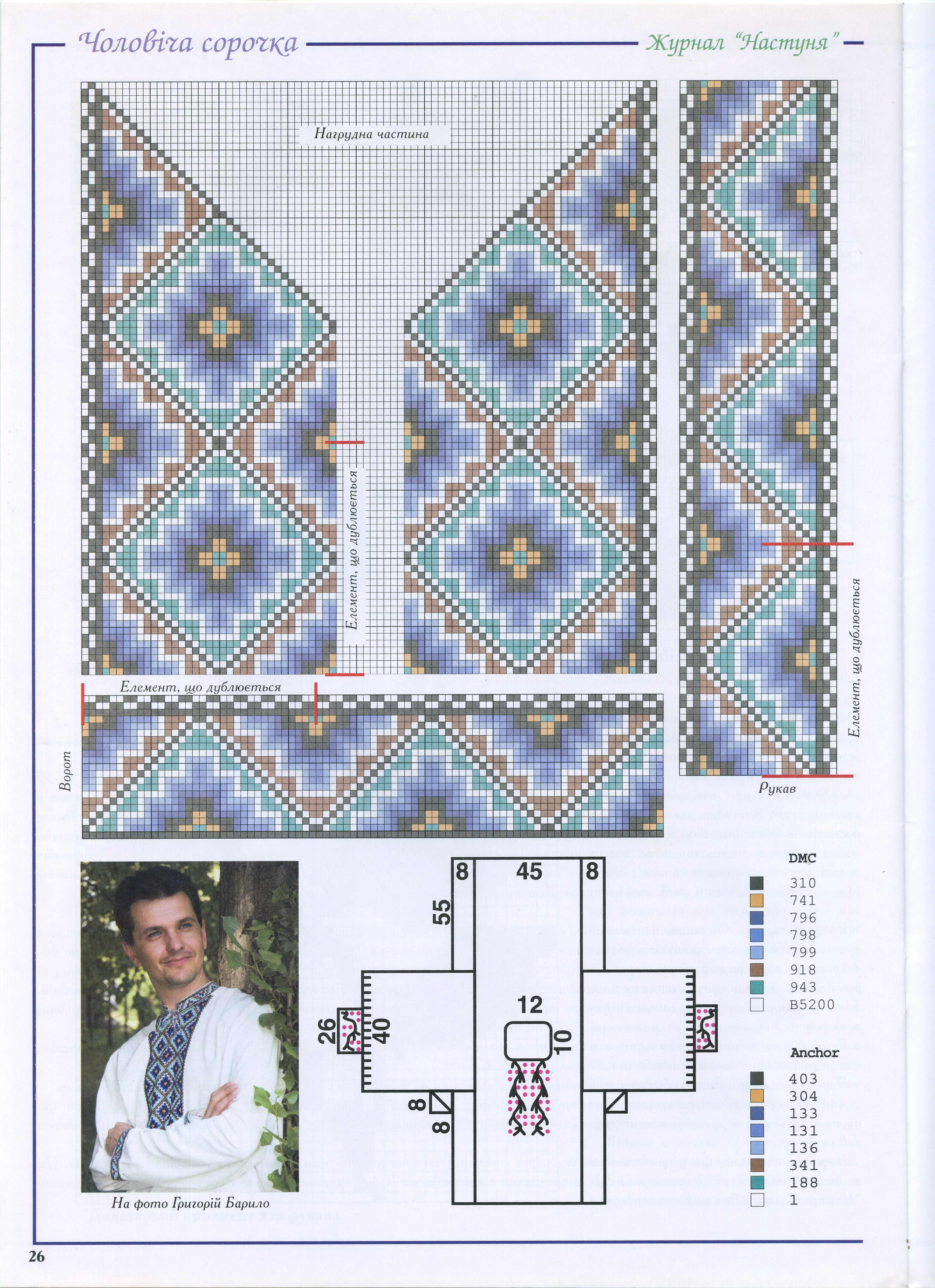 ElenaS, нашла вот такую схему вышивки мужской рубашки. К сожалению, опыта вышивания сорочек у меня нет. Я себя оправдываю тем, что не умею шить. Хотя дома у мамы есть швейная машинка, и мама на ней шьет отлично. А я так и не научилась. Хотя сорочка-вышиванка это моя мечта (да еще вышитая своими руками!!!!!).