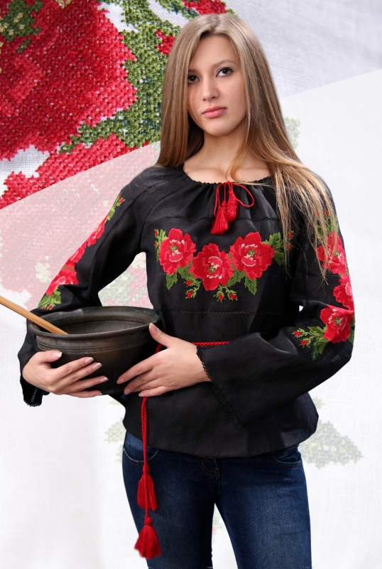 Мне как-то на белом цвете вышиванка больше нравится. Свадебное фото необычное и очень оригинальное. У самой в 17 лет был костюм, вышитый мамой, черного цвета. Но в вышивке было много белого цвета и красный поярче.