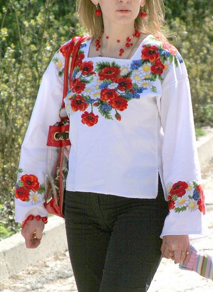 Сейчас уже все это утрачивает свою ценность, с появлением машинной вышивки нечего делать развышивать платье или блузку, или свадеьное платье или даже джинсы. Ручная вышивка встречается в коллекциях дизайнеров и стоит дорого, это понятно, но во когда я вижу машинную вышивку этих красных цветов, маков, продающиеся за пару тысяч, это уже за всякие рамки выходит. Не настолько оно и красиво и не стоит того...