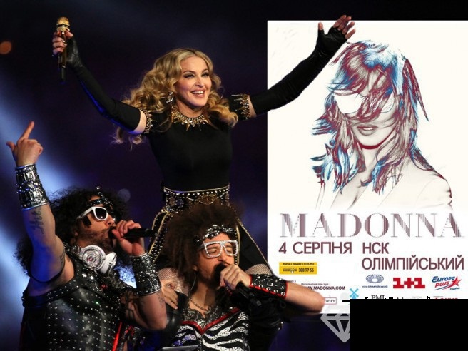 Сейчас проходит мировой тур Мадонны Madonna Dance Party Tour в поддержку ее альбома M.D.N.A. Певица посетит 26 европейских городов, ну и конечно не забудет об Америке и Австралии. Нас она также решила порадовать, правда, изначально Украины не было в списке стран, но Мадонна одумалась и решила приехать в Киев. Ура! Может в этом есть заслуга группы KAZAKY, не так давно они вмести выпустили клип. Как думаете? Наверное, Мадонне понравились украинские мужчины. Говорят, что в Украину певица везет с собой, своего повара и врача, видно не доверяет нашим.  Концерт состоится 4-го августа на самом большом стадионе Украины НСК "Олимпийский". Цены на билеты, наверное, будут сногсшибательные. Может кто-то интересовался? Я очень хочу сходить на ее концерт, жалко возможности нет. Девочки, а может, кто из вас посетит концерт Мадонны? А может кто-то уже был на ее выступлениях? Поделитесь впечатлениями!