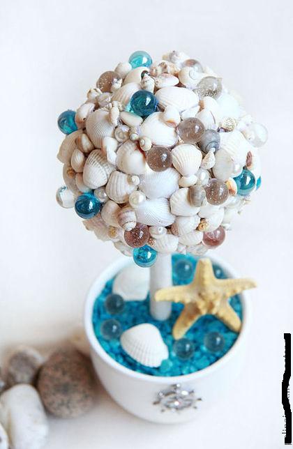 Как воспоминание о лете и море, можно сделать дерево топиарий с ракушек: