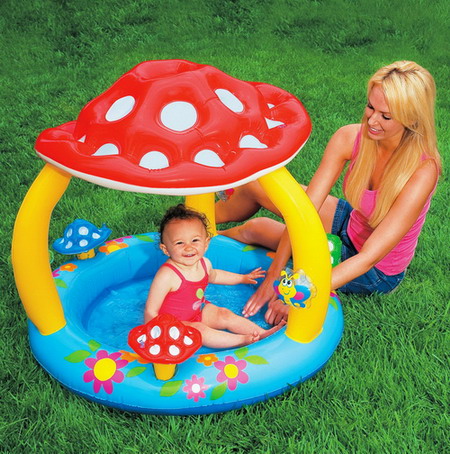 А может лучше покупать бассейн с крышкой, в виде грибочка, например, чтоб солнышко в голову ребенку не пекло.