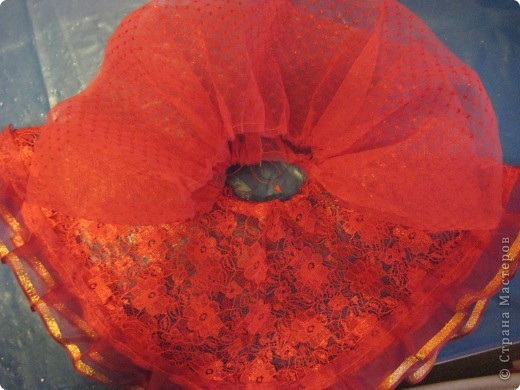 Одеваем манекен в платье, ткань клеится с помощью термопистолета, стыки ткани нужно прикрыть лентой, тесьмой, кто чем хочет. Чтоб закрыть основу вырезаем из ткани круг диаметром больше, чем сам круг и приклеиваем пистолетом Вложение: