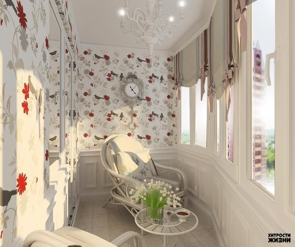 Странные обои, но для балкона сойдут, красивое кресло, такое и я бы обожала) Мне больше понравилась лоджия кухня, прекрасное решение для небольшой квартиры