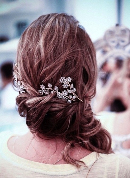 Мне нравятся скромненькие украшения в волосы, без перьев и изобилия камней, также сейчас модны и мне нравятся цветы в волосы по типу живых, как на фото.