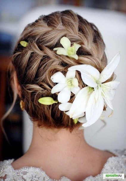 Мне очень понравились прически с живыми цветами, очень красиво и нежно смотрится.