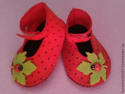 Очень понравились детские пинетки из фетра. Можно сделать на любой вкус и любую тематику.